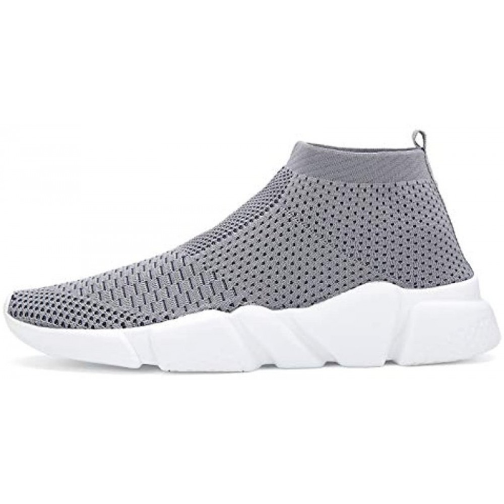 Santiro Men's Running Shoes Breathable Knit Slip On Sneakers Lightweight Athletic Shoes Casual Sports Shoes Grey