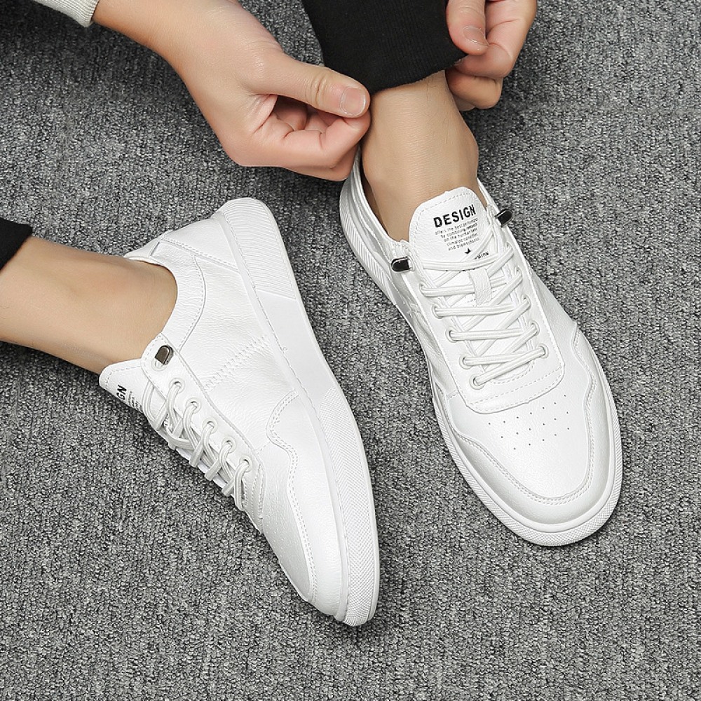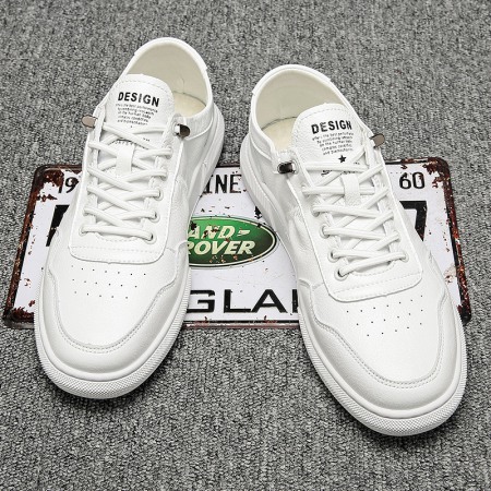Summer New Pure Leather White Shoes Men's Trend Casual Shoes Sneakers Men's Shoes White Trendy Shoes